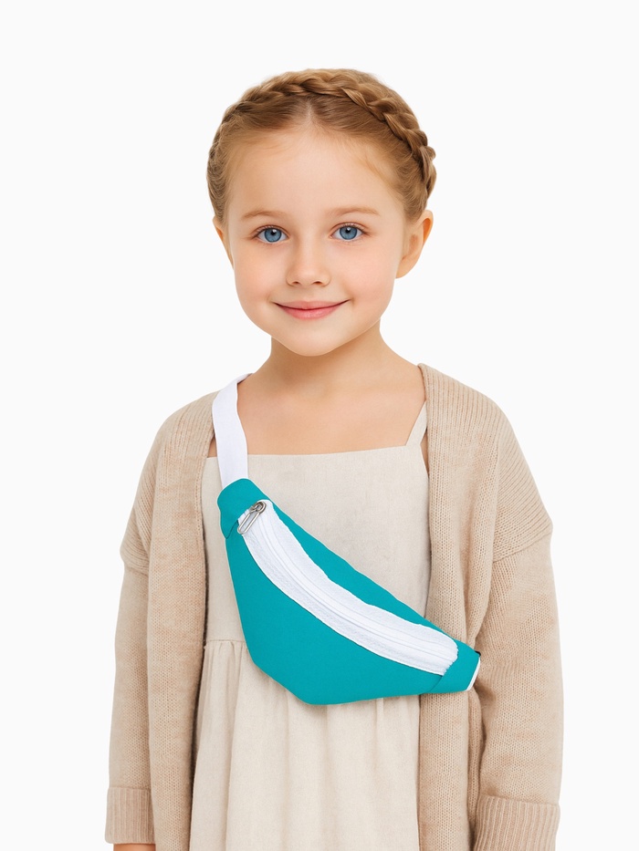 Сумка поясная детская для девочки на молнии, цвет бирюзовый
