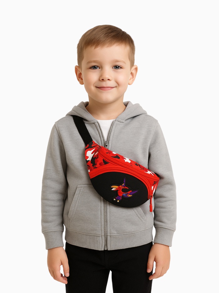 Сумка поясная детская для мальчика на молнии, цвет красный/чёрный
