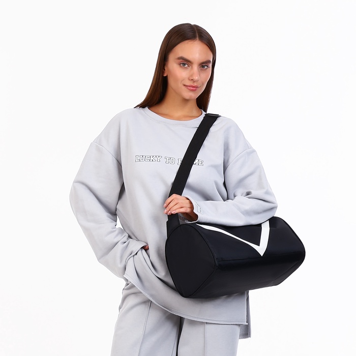 Сумка спортивная на молнии, боковой карман/сетка, регулируемый ремень, маленький размер, цвет чёрный