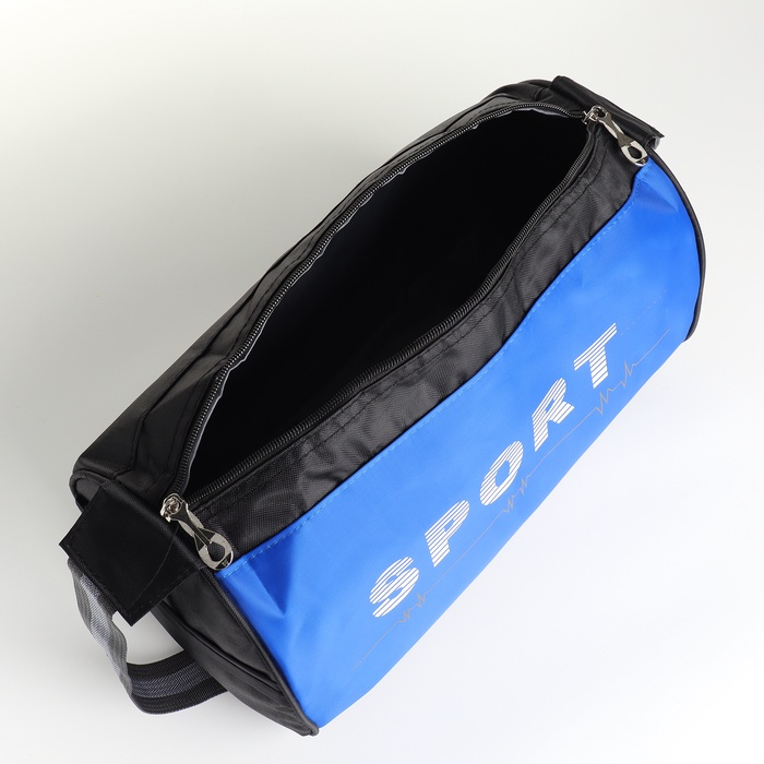 Сумка спортивная на молнии, боковой карман/сетка, регулируемый ремень, маленький размер, цвет чёрный/василёк