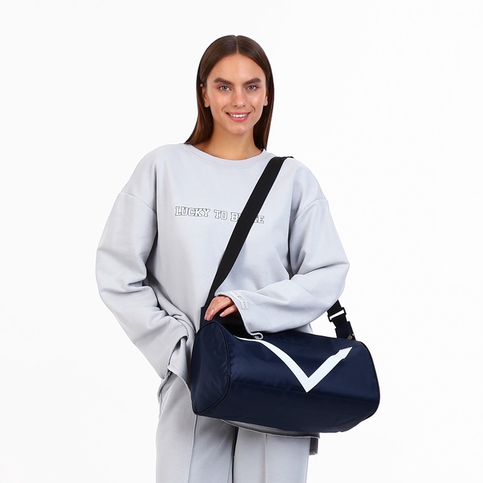 Сумка спортивная на молнии, боковой карман/сетка, регулируемый ремень, маленький размер, синяя