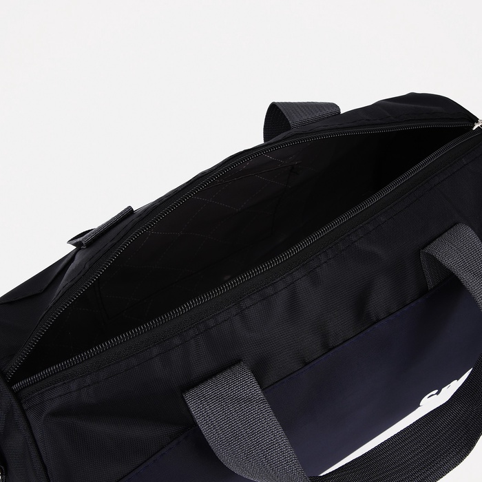 Сумка спортивная на молнии, длинный ремень, маленький размер, чёрная/синяя