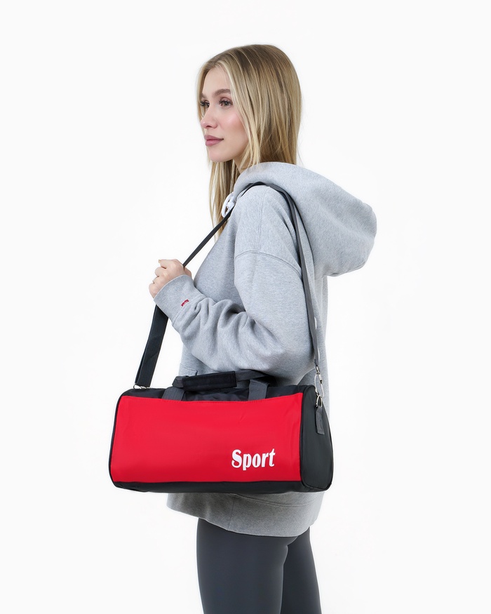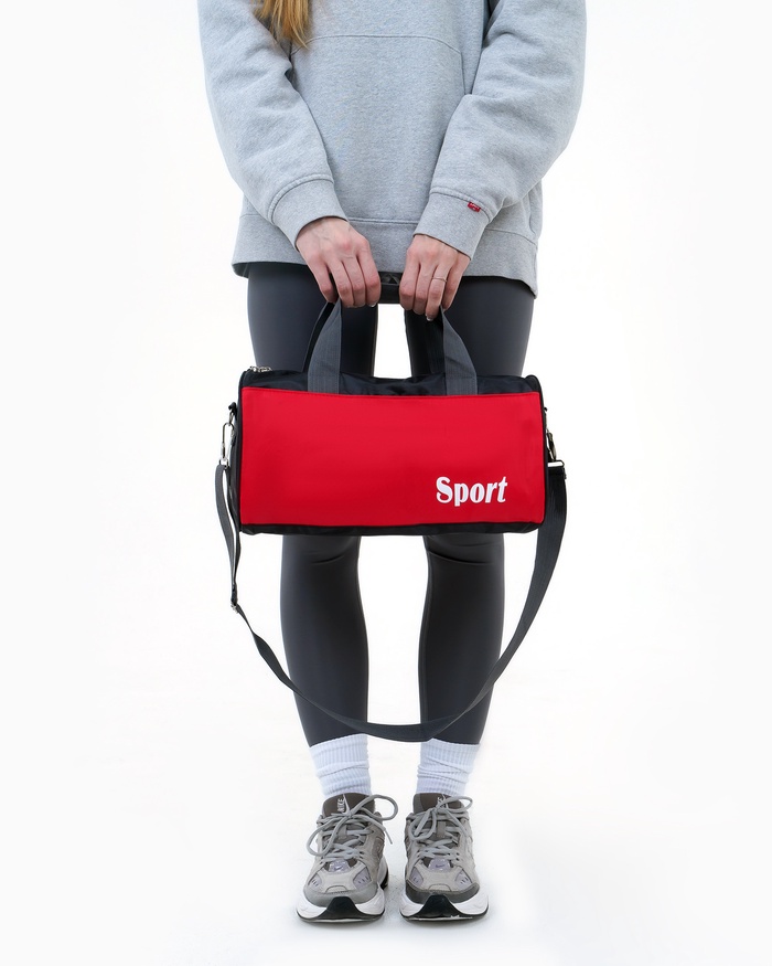 Сумка спортивная на молнии, длинный ремень, маленький размер, цвет чёрный/красный