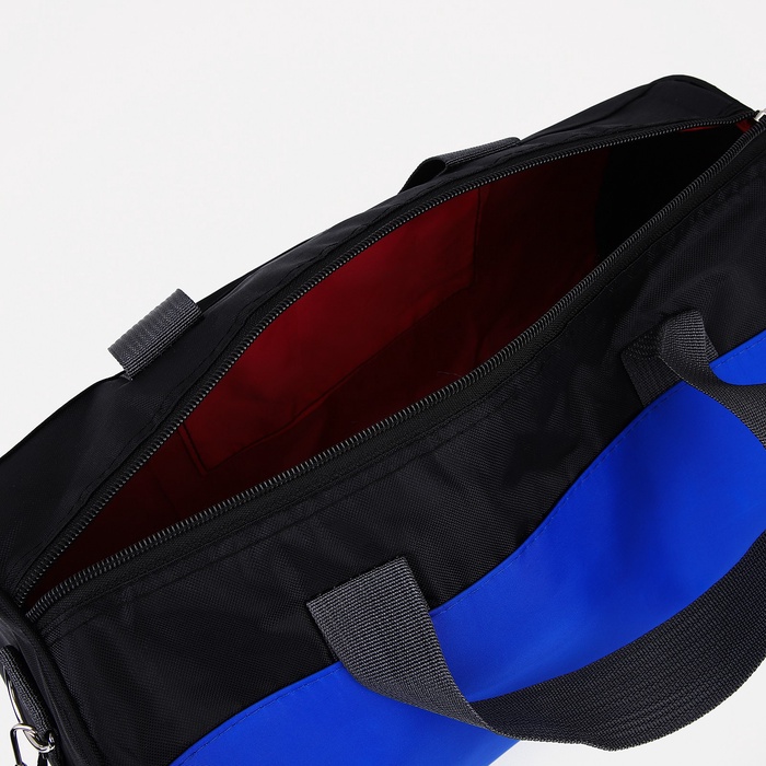 Сумка спортивная на молнии, длинный ремень, маленький размер, цвет чёрный/василёк