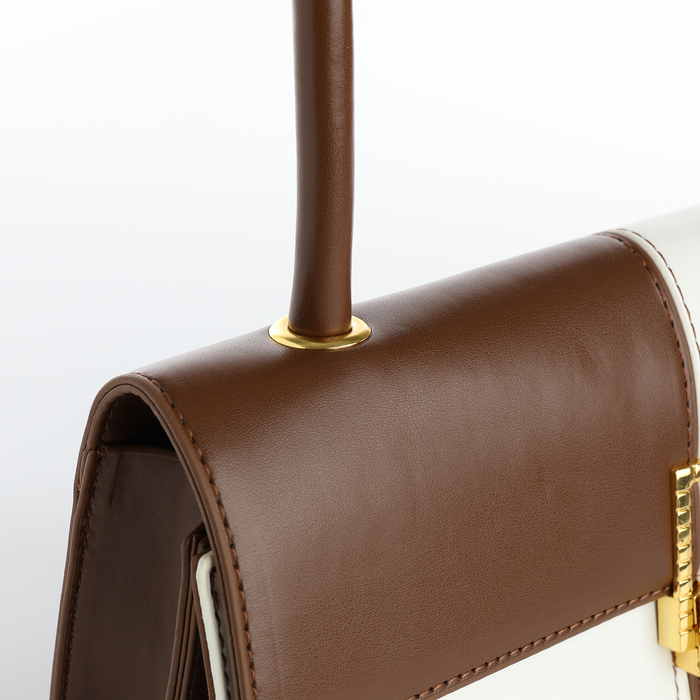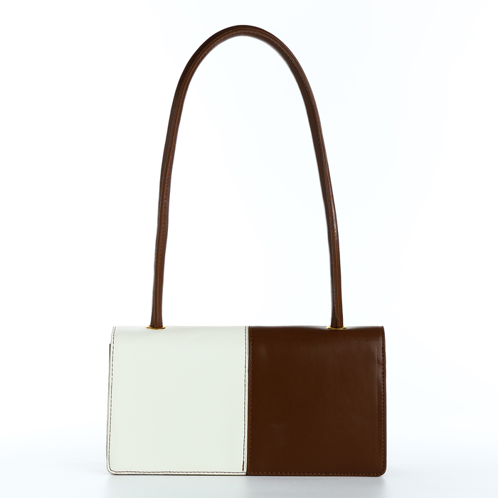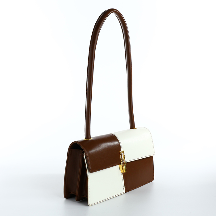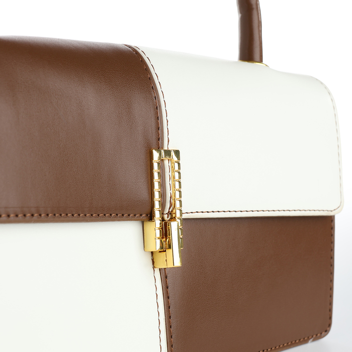 Сумка женская на клапане, цвет белый/коричневый
