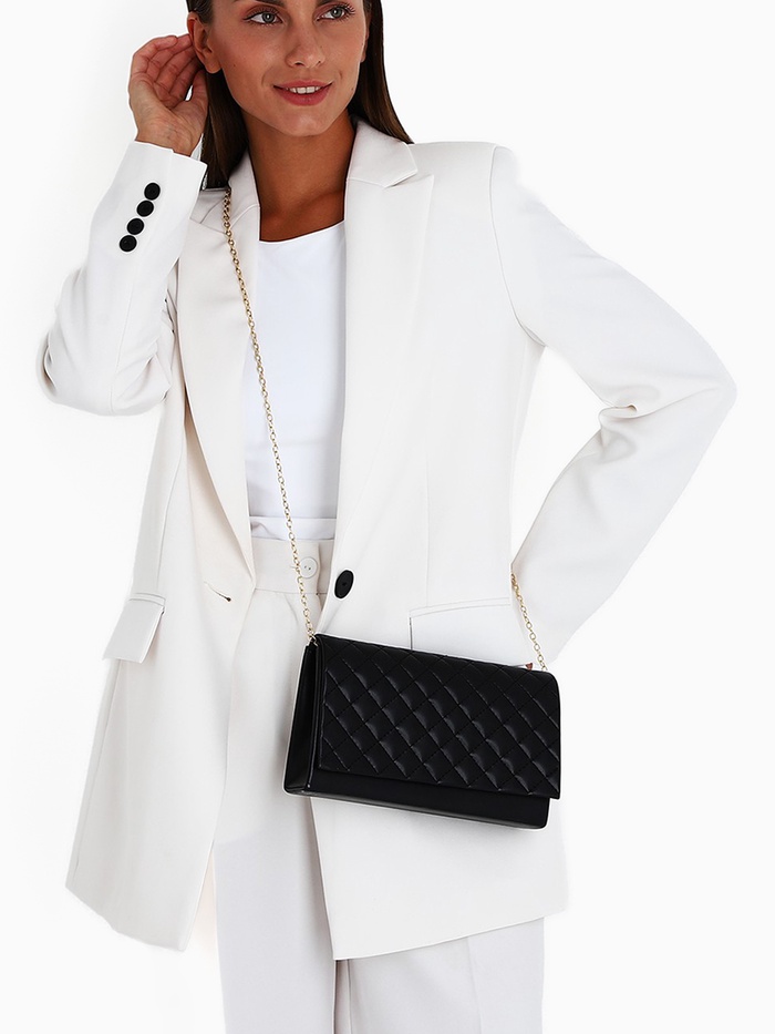 - Уникальный стиль: Черный цвет сумочки в сочетании с золотистой фурнитурой делает ее классическим дополнением к вашему гардеробу. Однотонная текстура и декоративная цепочка добавляют изящества и шарма.