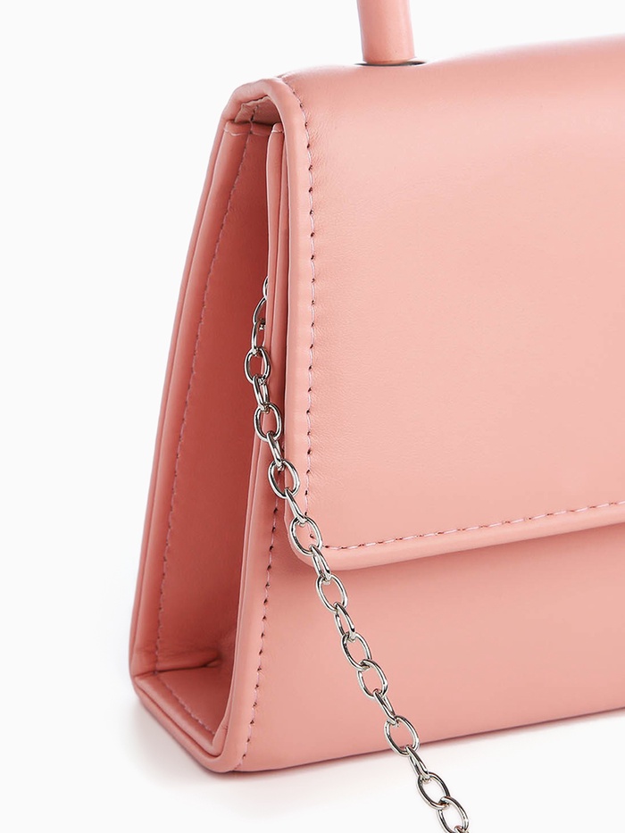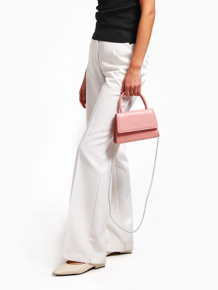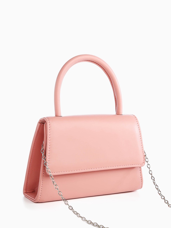 - Элегантность и универсальность: Однотонная поверхность из искусственной кожи подчеркивает чистоту линий, без излишков. Ремешок на цепочке позволяет носить её в руке, на плече или через плечо, изменяя стиль в зависимости от ситуации.