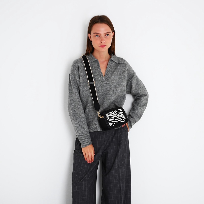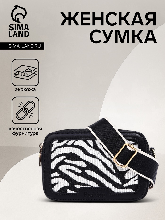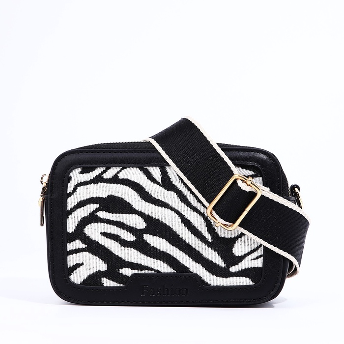 Сумка женская на молнии, цвет чёрный/белый/зебра