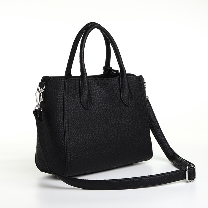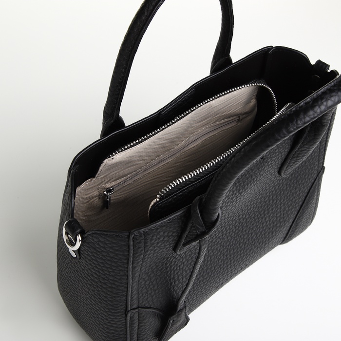 Её продуманный дизайн с застежкой на молнии обеспечивает безопасность ваших вещей, а внутренние и внешние карманы позволяют удобно разместить все необходимые мелочи. Универсальность модели дополнена стильной серебристой фурнитурой, которая идеально сочетается с чёрным цветом. Несмотря на компактные размеры, сумка достаточно вместительна для ваших повседневных нужд.