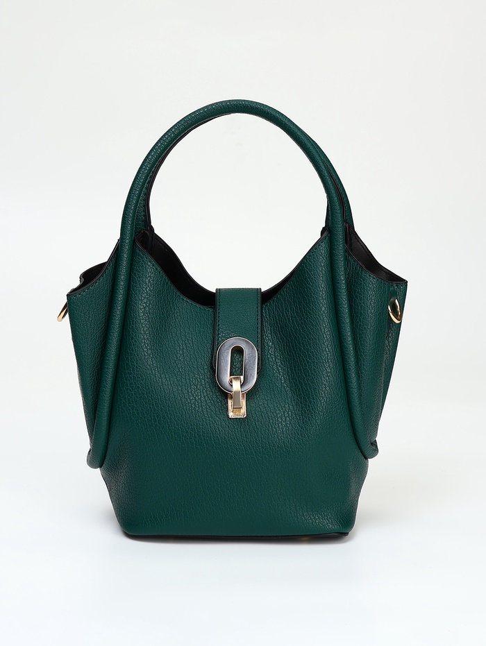 Сумка женская тоут на застёжке, цвет тёмно-зелёный