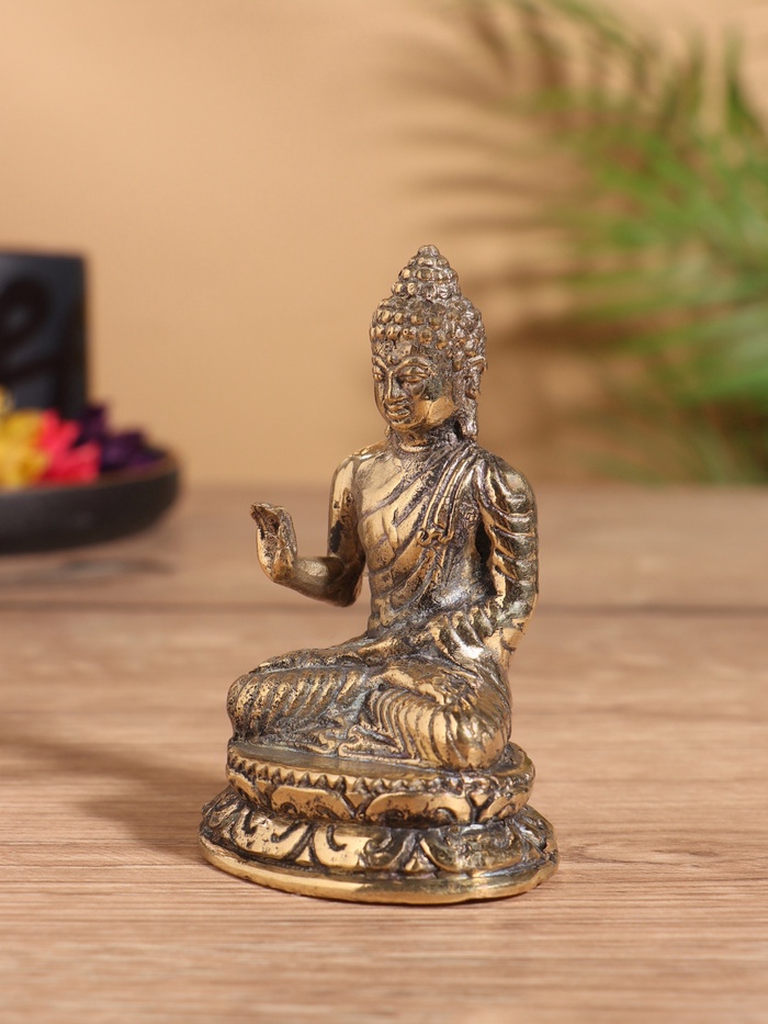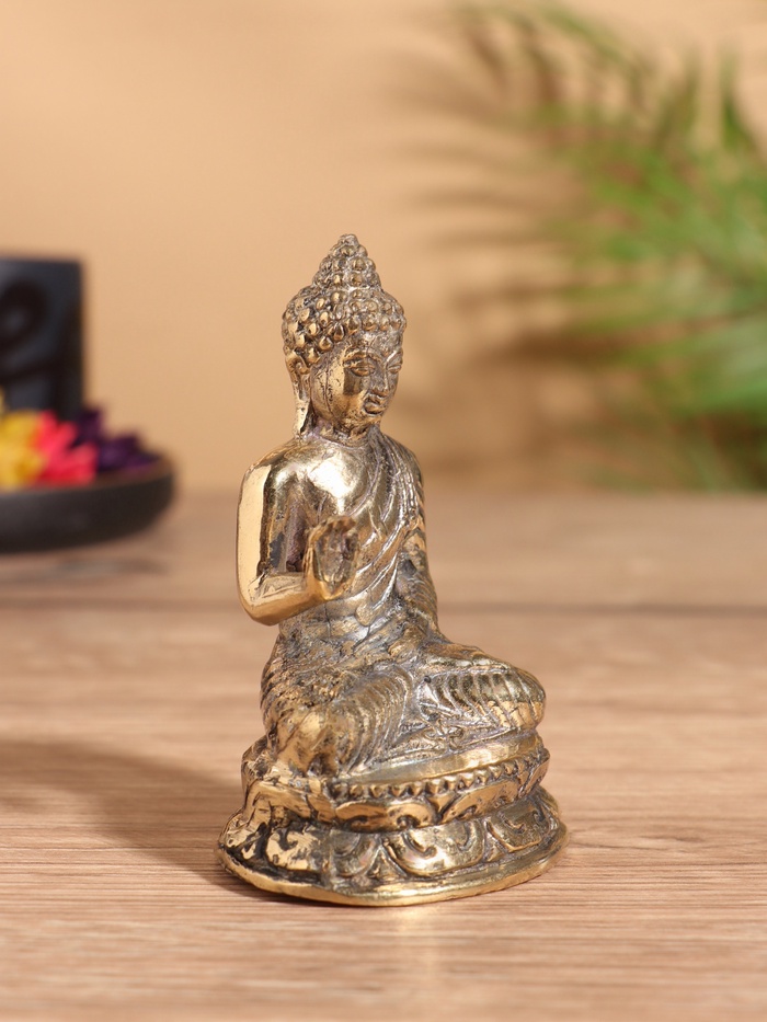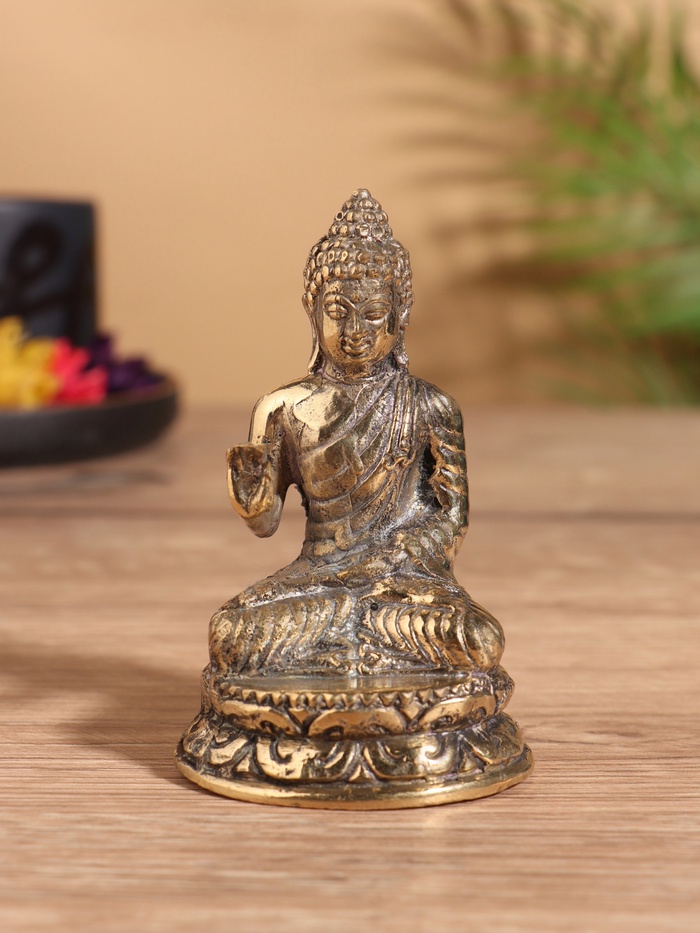 Сувенир «Будда Благословения» из бронзы с золотистым оттенком станет универсальным украшением вашего интерьера. Изящная статуэтка высотой 11 см представляет собой образ Будды, символизируя духовную гармонию и просветление. Прочный бронзовый материал без дополнительных покрытий делает фигурку долговечной и устойчивой к внешним воздействиям. Этот одиночный элемент декора украсит ваш дом, добавив в него ноты спокойствия и благословения, которыми наполнен каждый аспект учения Будды.