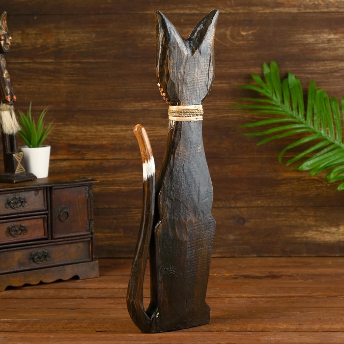 Сувенир дерево "Кошка коричневая с узором" 7х17х50 см