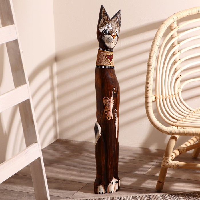 Сувенир дерево "Кошка с бабочками и сердечком на ошейнике" 80х13х7 см