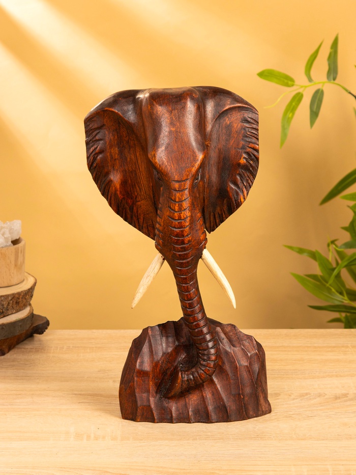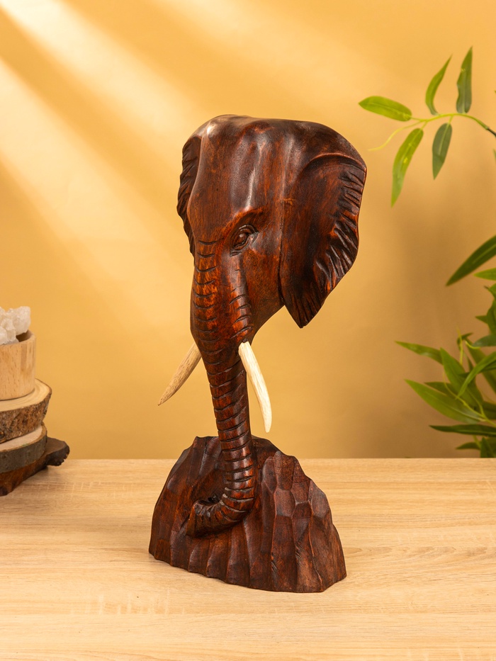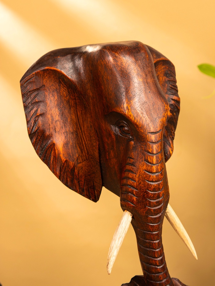 Сувенир "Голова слона" дерево Суар, 18х9х38 см, цв. тёмно-коричневый