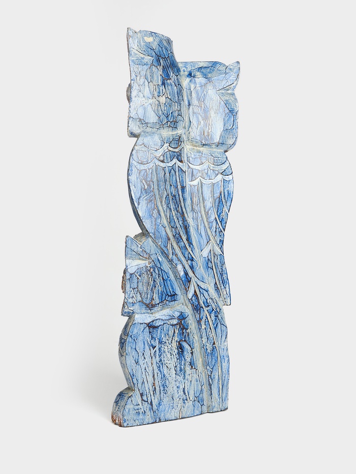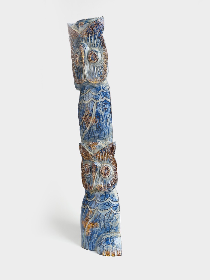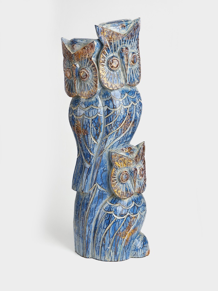 Сувенир интерьерный "Совы на ветке" дерево 20х8х60 см, цв. голубой