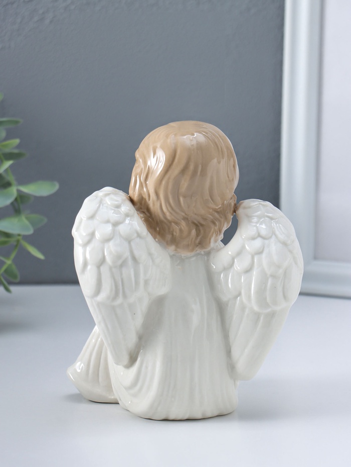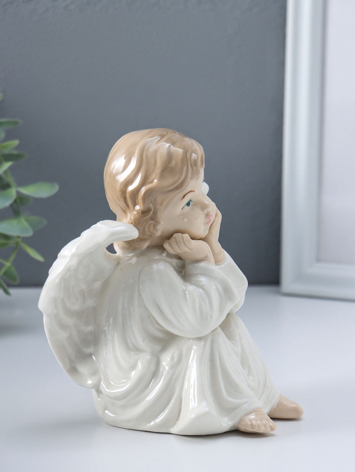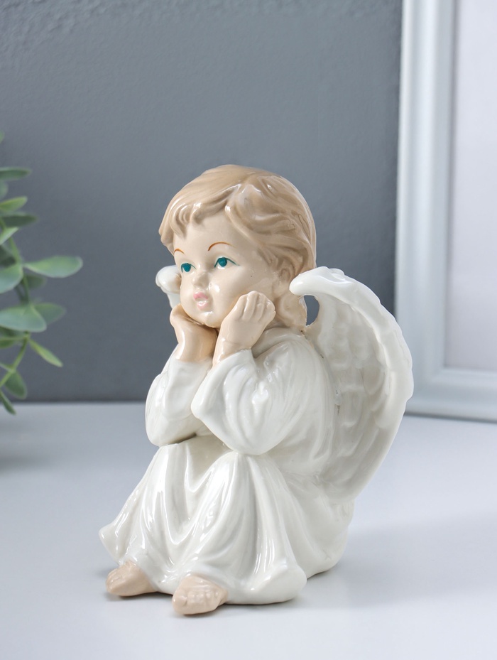 Сувенир керамика "Ангел в белом платье, сидит" 10х11х15,5 см