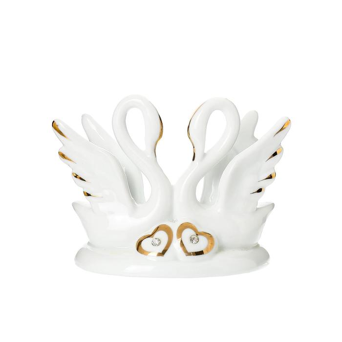 Фигурка керамика «Два белых лебедя в пруду», с золотом, стразы, 14 см