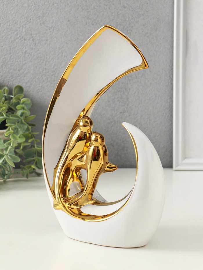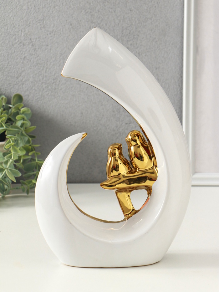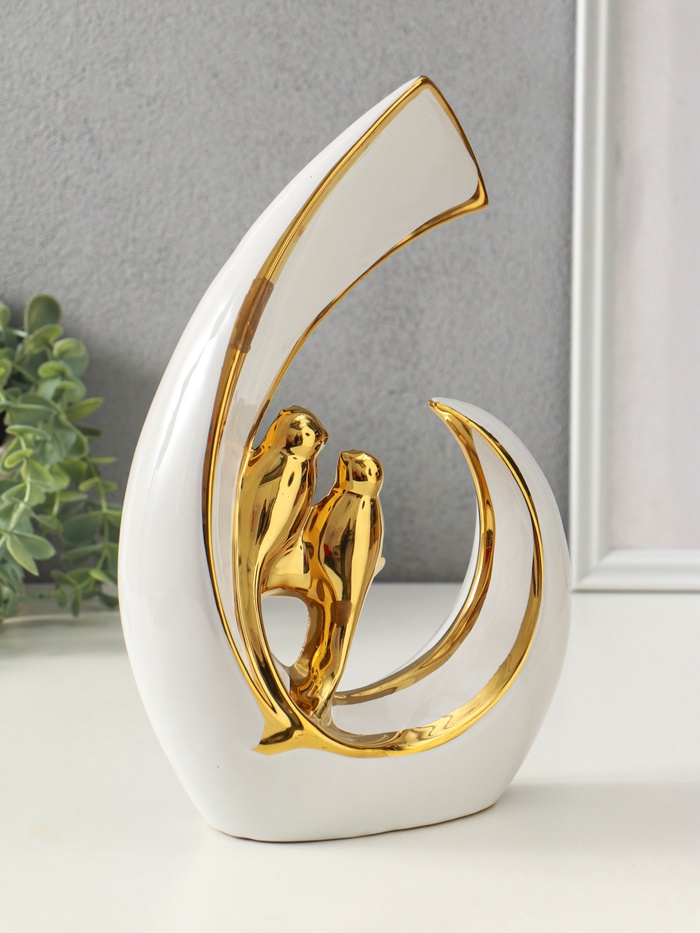 Сувенир керамика "Две птички. Абстракция" белый с золотом 8х20х29 см