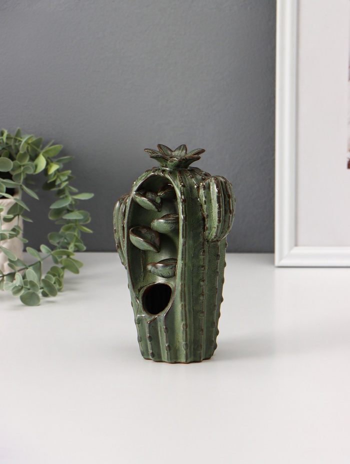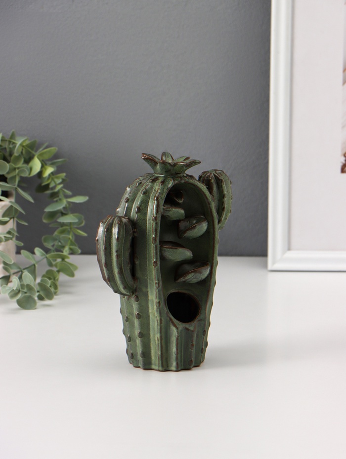 Сувенир керамика "Кактусник" зелёный 14х8х19см
