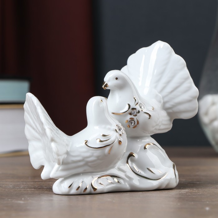 Сувенир керамика под фарфор 2 голубка 12,5*9*6 см, стразы