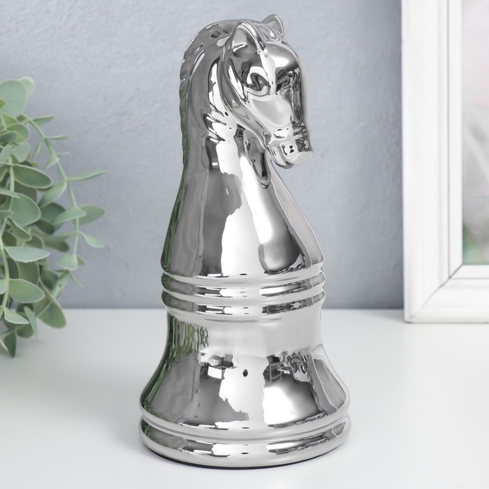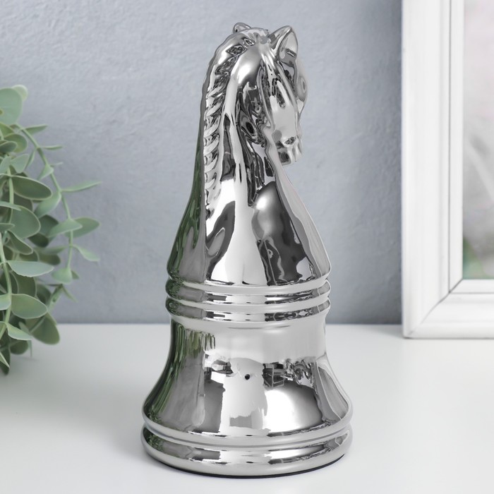 Сувенир керамика "Шахматная фигура. Конь" серебро 20,5х10х10 см