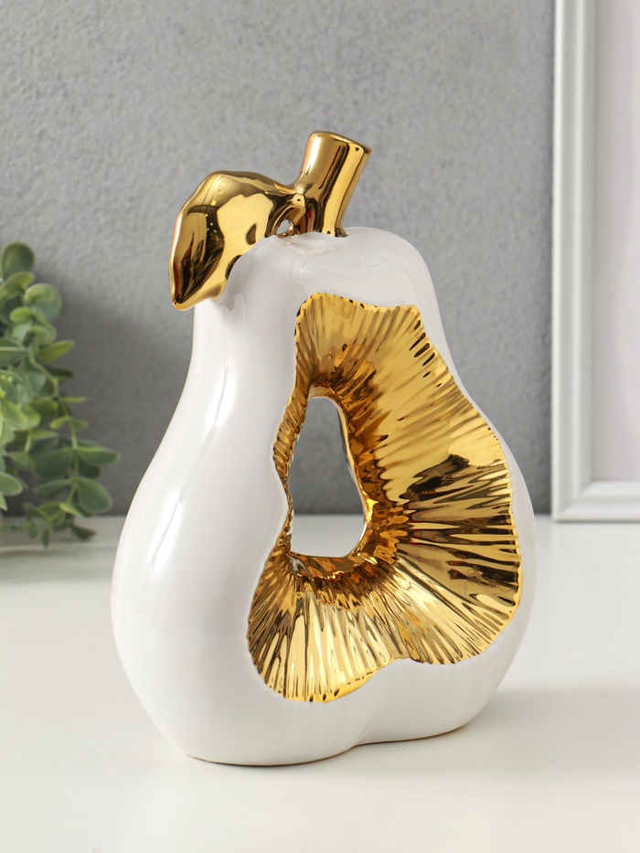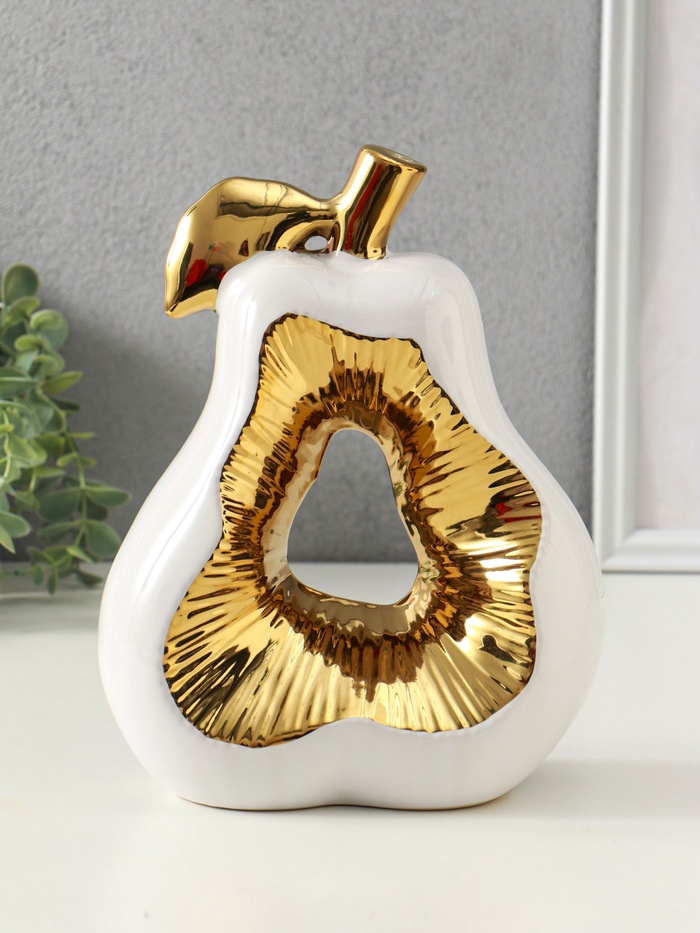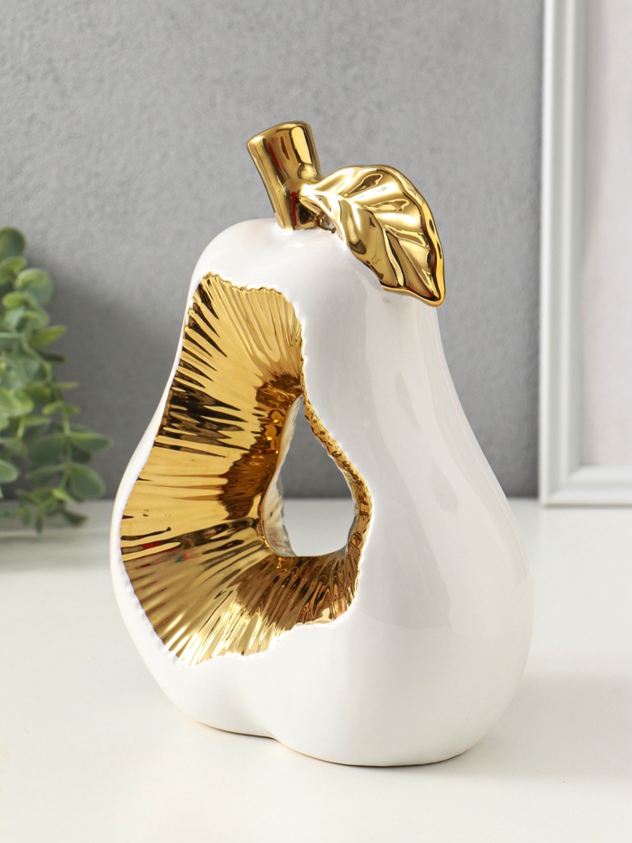 Сувенир керамика "Срез груши" белый с золотом 10х18х24,5 см