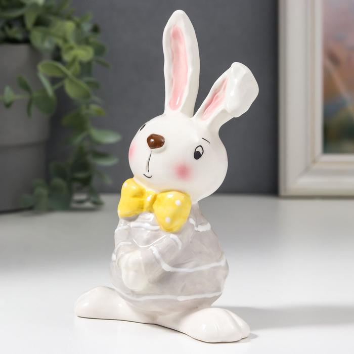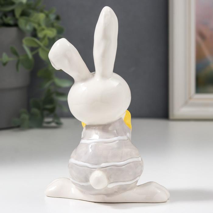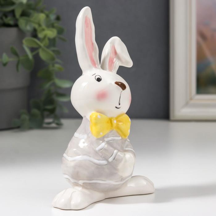 Сувенир керамика "Стеснительный зайчик в серой кофточке, с жёлтым бантом" 14,3х6,6х9,8 см