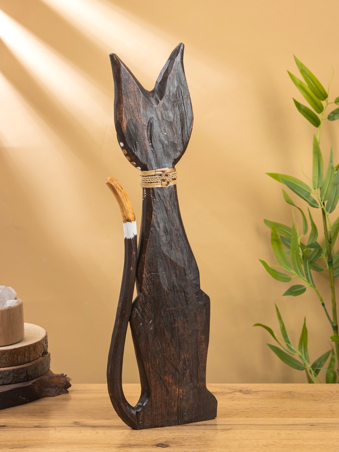 Сувенир «Кошка коричневая с узором», 7×17×50 см, дерево