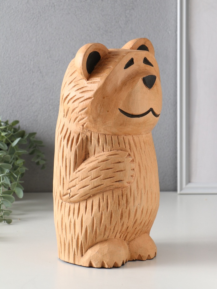 Фигурка полистоун «Мишка в шапке; колпаке, стоит», серый, 4×3×7 см, МИКС