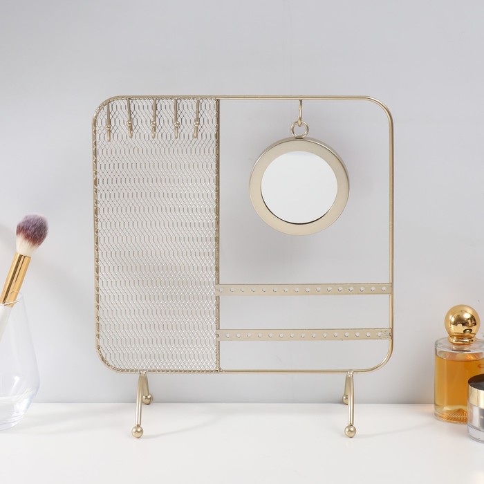 Если вы занимаетесь реализацией разнообразных украшений и аксессуаров, то вам нужно наглядно продемонстрировать свой товар, представив его в лучшем виде. Сувенир металл с зеркалом подставка для украшений "Сети" золото 25,3х10х28,7 см как нельзя лучше справится с этой задачей! У каждого украшения появится своё место, откуда его можно будет хорошо рассмотреть.