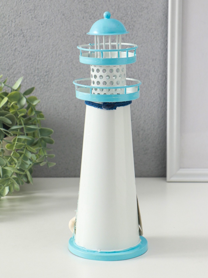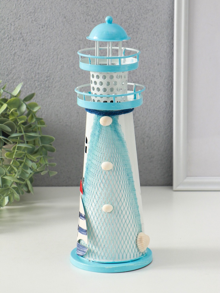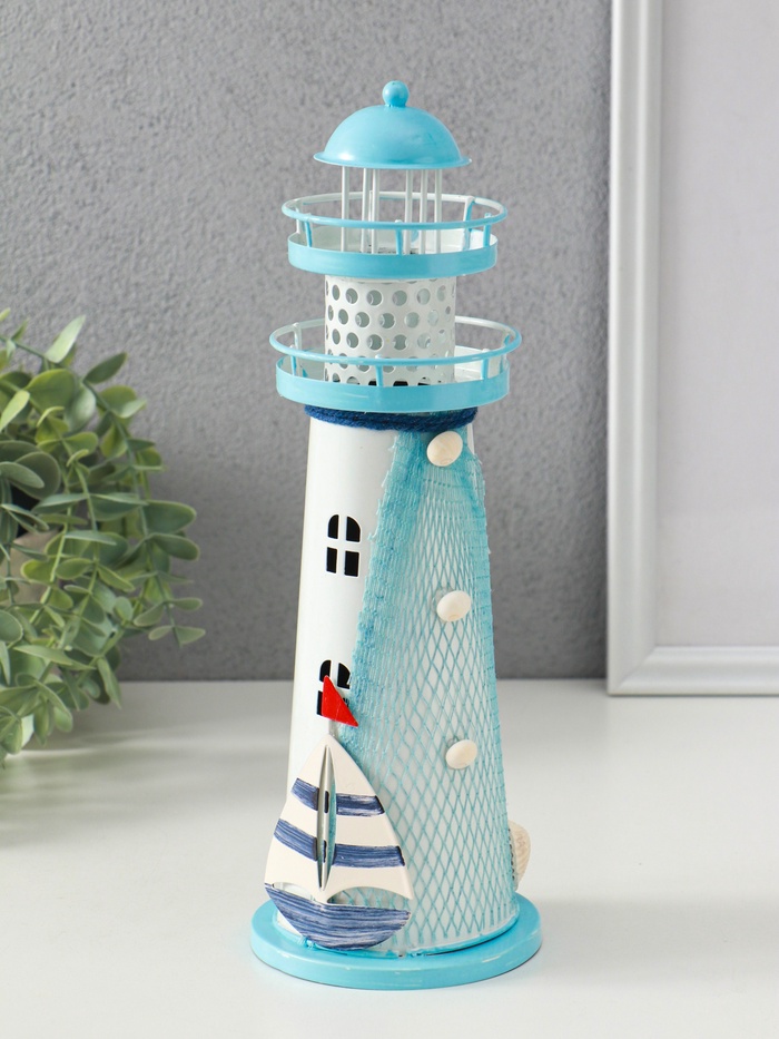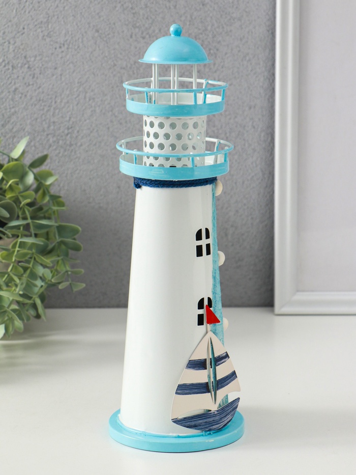 Сувенир настольный "Маяк с парусником" голубой, 3хLR1130, RGB, LED 9,5х9,5х28,5 см