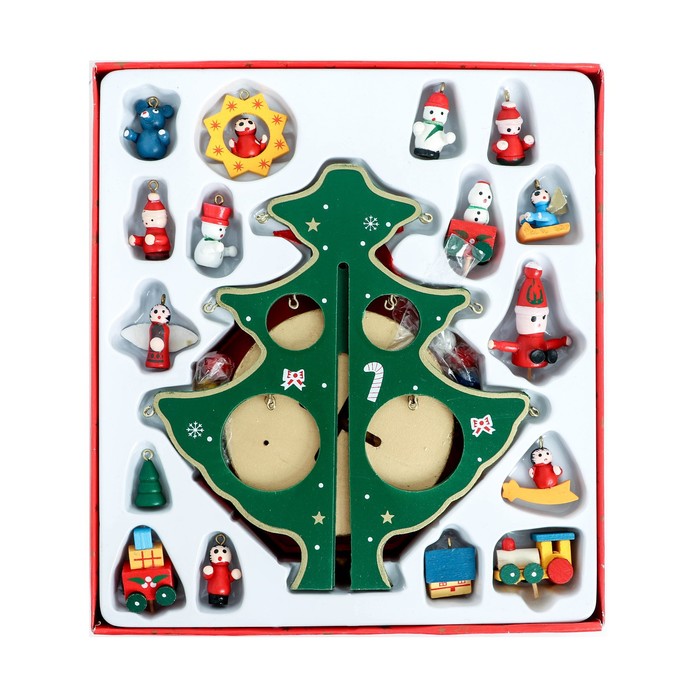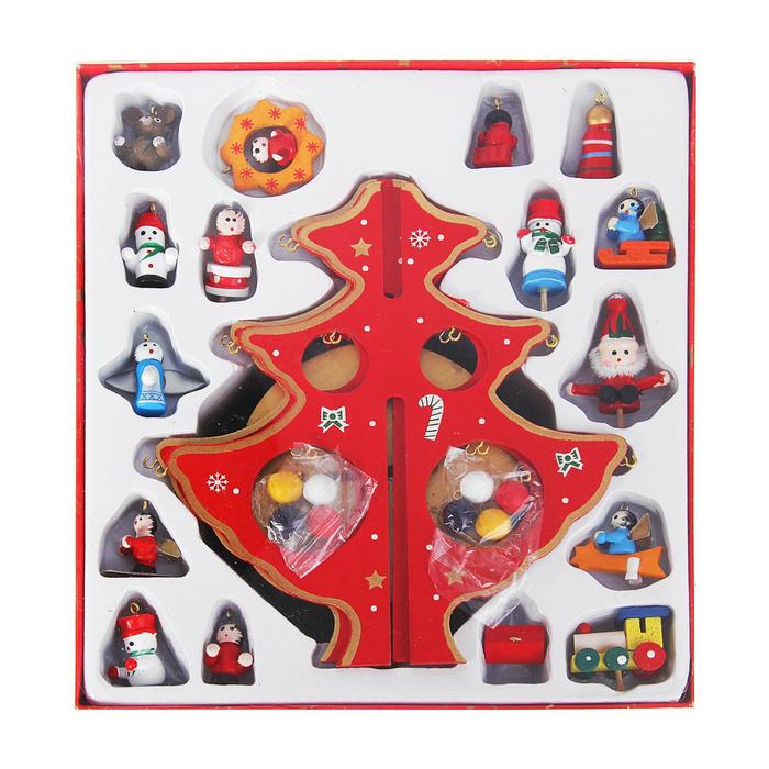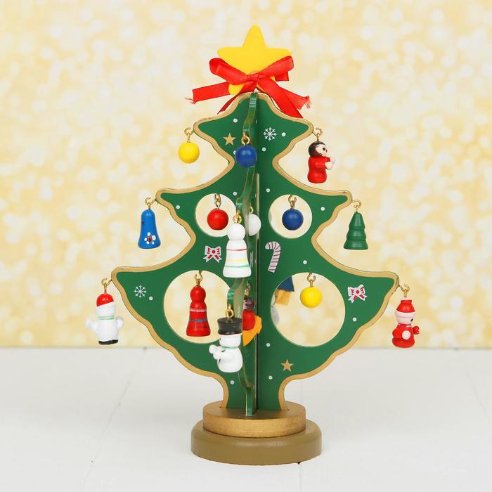 Нарядная деревянная ель – уникальный сувенир. Декоративное дерево имеет необычный дизайн: в фигурные отверстия на ней помещаются забавные игрушечки-подвески, которые можно расположить по своему вкусу.