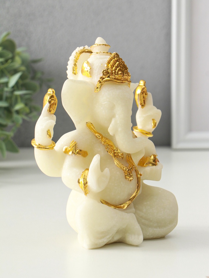 Сувенир песчаник "Ганеша - мудрость и благополучие" белый с золотом 8х13х18,5 см