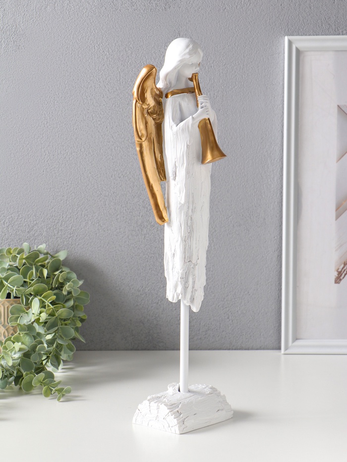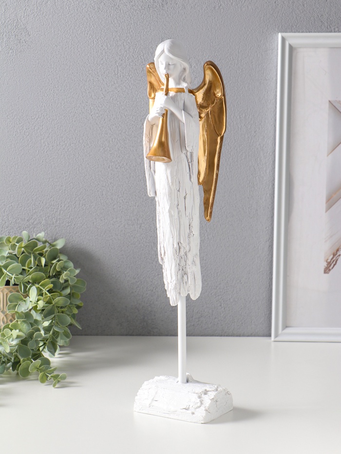 Сувенир полистоун "Ангел с золотыми крыльями играет на дудочке" 8,5х10,5х44 см