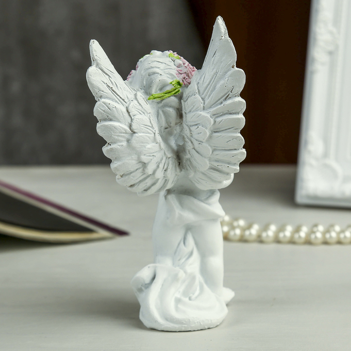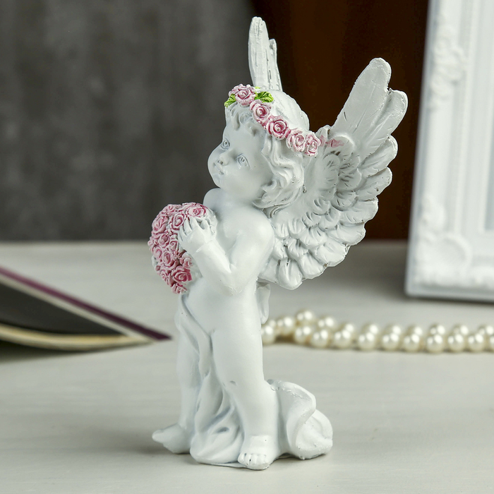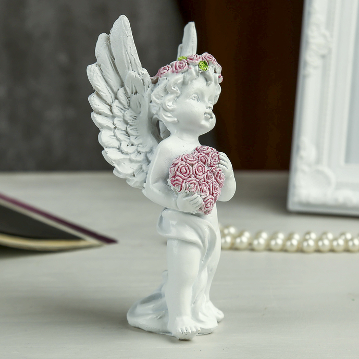 Сувенир полистоун "Ангел в розовом венке с сердцем из роз" МИКС 15х7,8х5,5 см