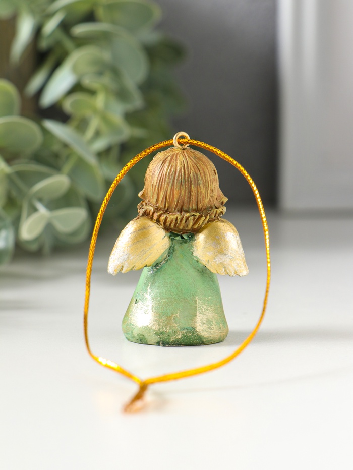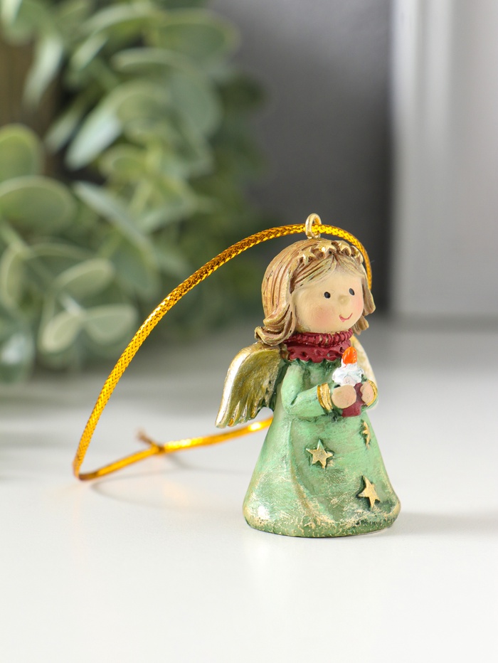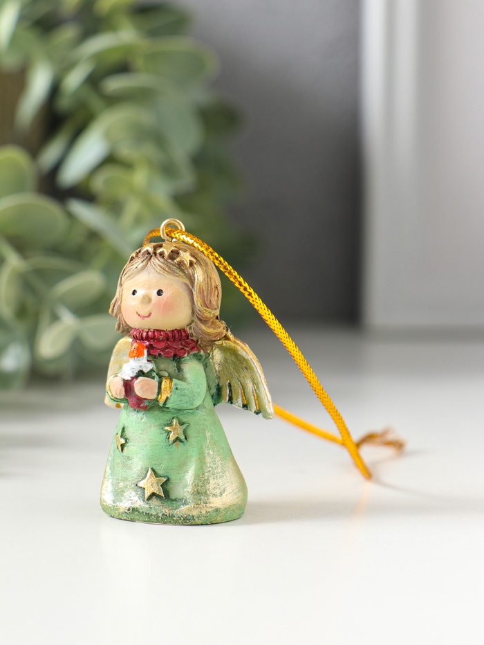 Сувенир полистоун "Ангелочек со звёздами на зелёном платье, со свечой в руках" 3,8х2,6х5 см 109157