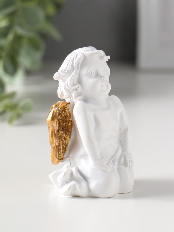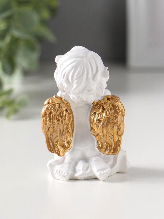 Сувенир полистоун "Белоснежный ангел с золотыми крыльями" 4,5х5х8,5 см