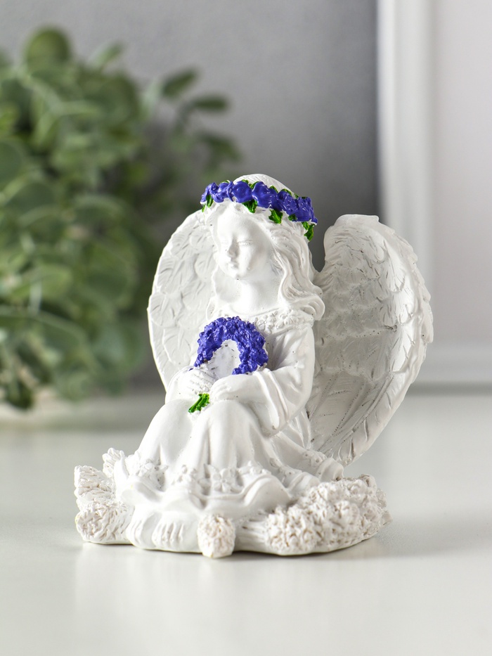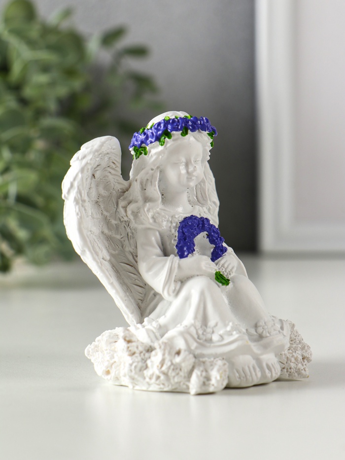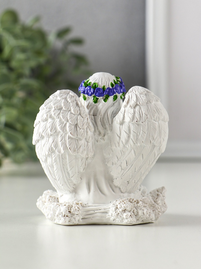 Сувенир полистоун "Девочка-ангел с венком из лаванды" белый с фиолетовым 8х6х8,5 см