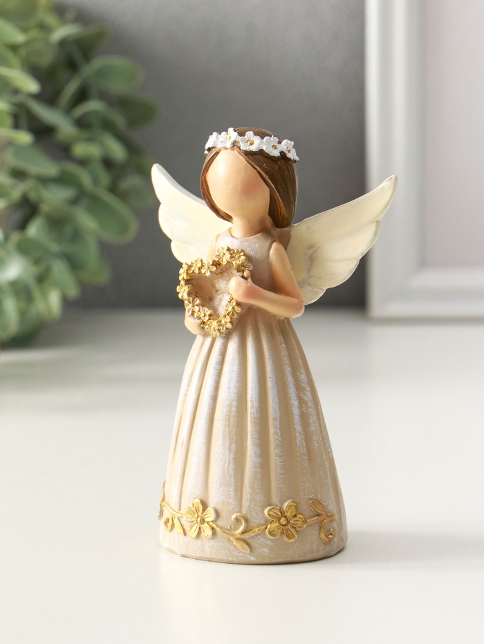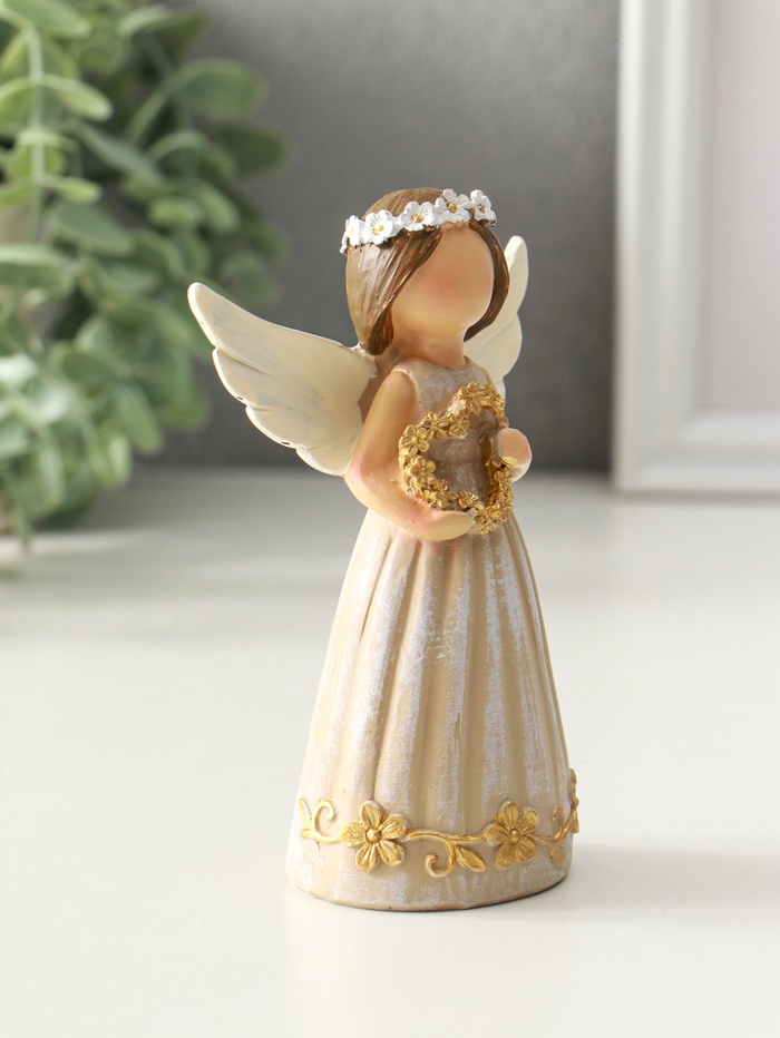 Сувенир полистоун "Девочка-ангел с венком-сердце" 4,5х8х12 см