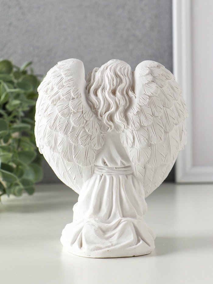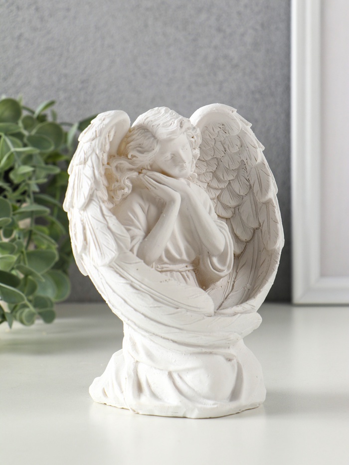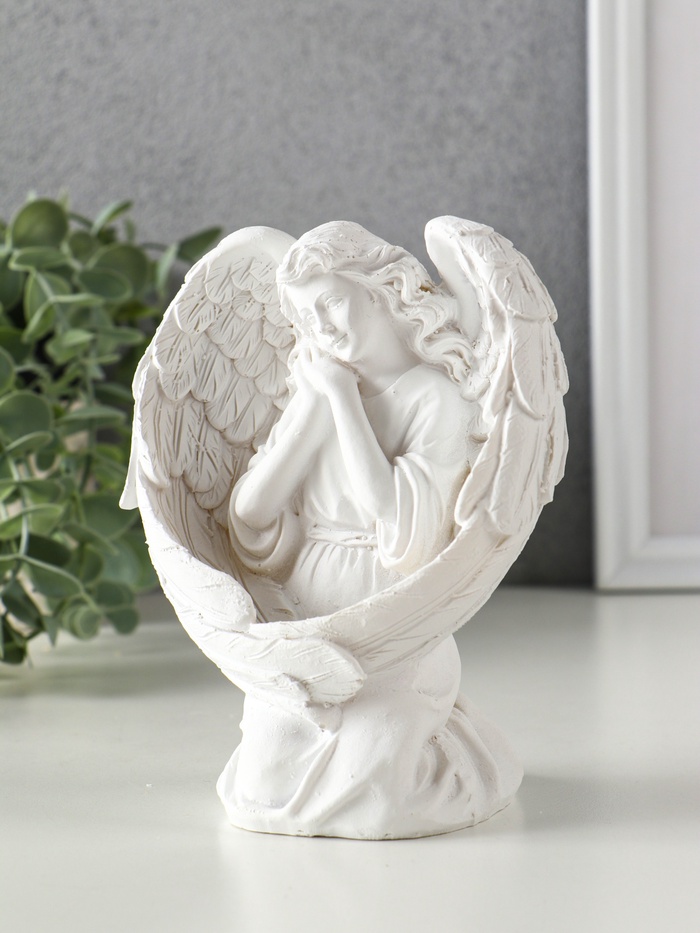 Сувенир полистоун "Девушка-ангел - обниму тебя крыльями" белый 12,5х9х15 см