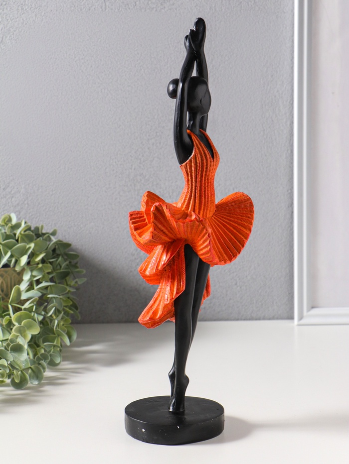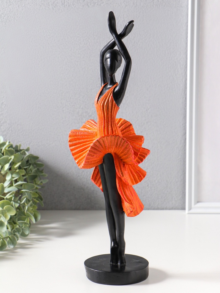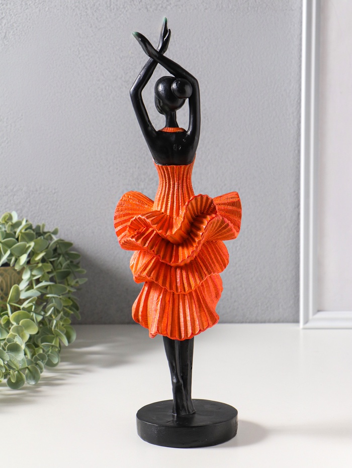 Сувенир полистоун "Девушка в ярко-оранжевом платье - фламенко" чёрный 12х10,3х39 см