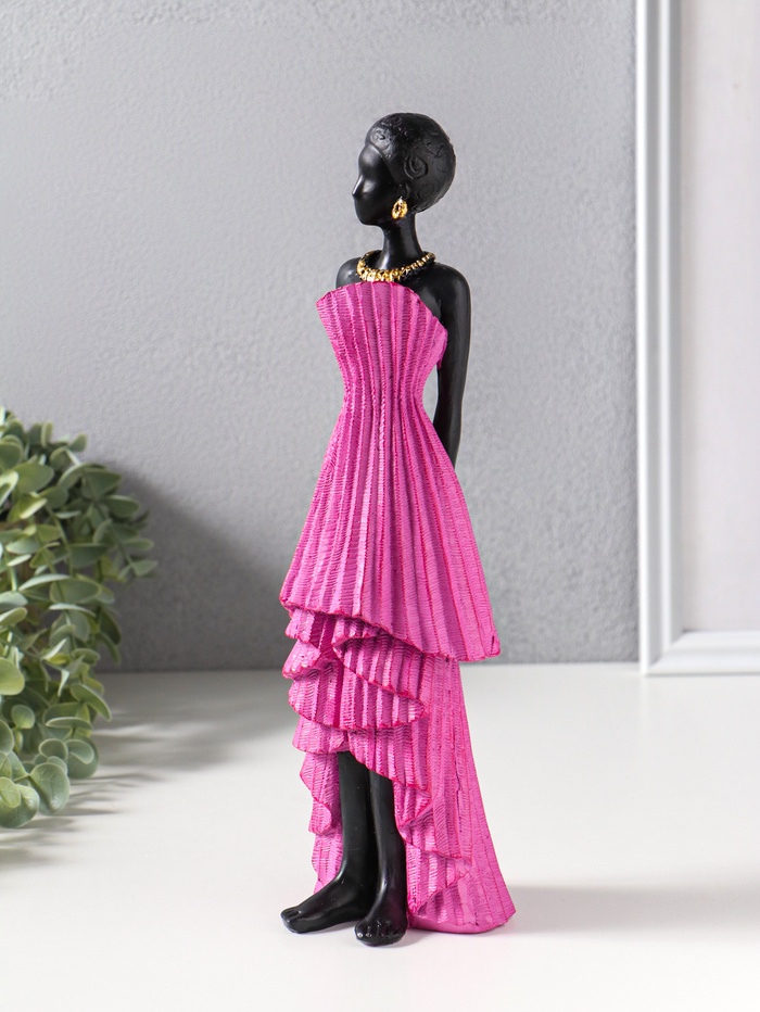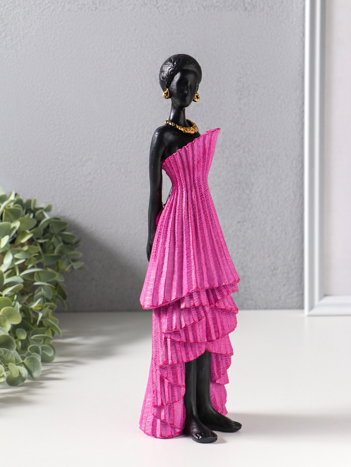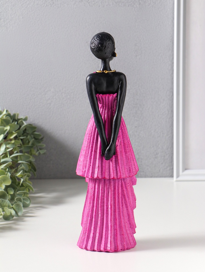 Сувенир полистоун "Девушка в ярко-розовом платье с оборками" чёрный 9х8,5х30,5 см