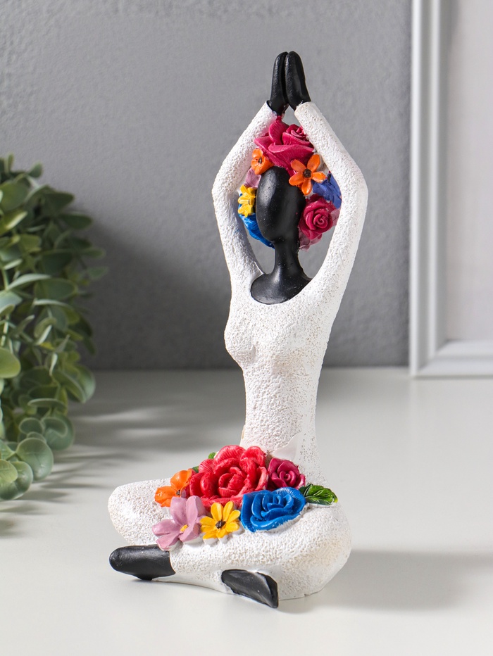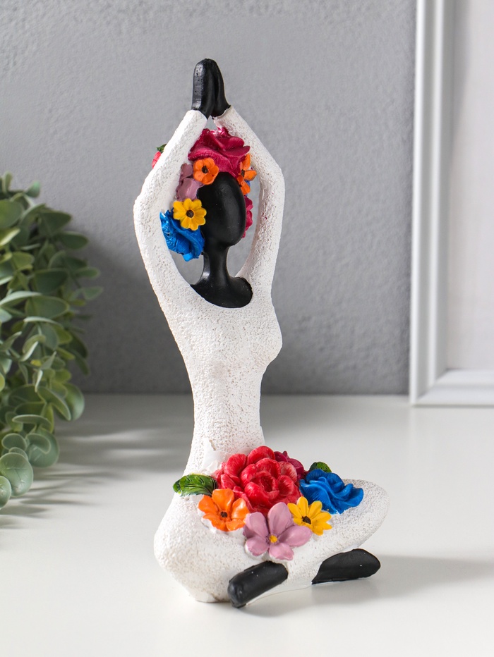 Сувенир полистоун "Девушка-йогиня, с цветами" чёрный 12,5х10,5х22,5 см