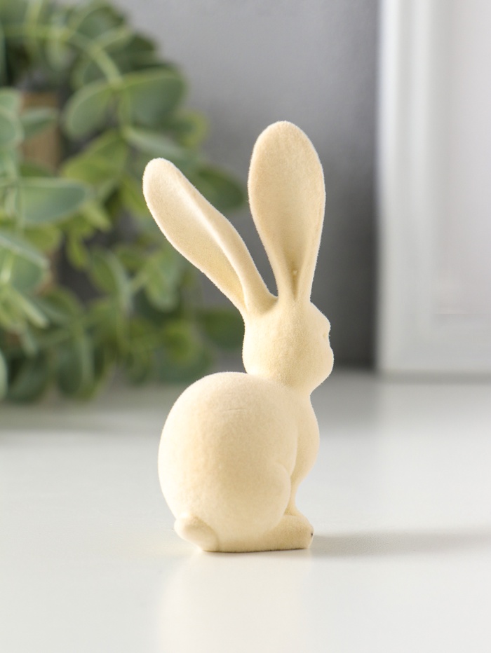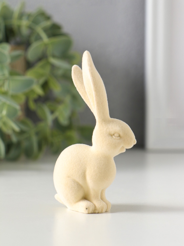 Сувенир полистоун, флок "Белый заяц" 3х4,5х8,5 см