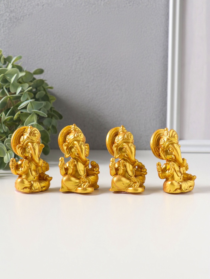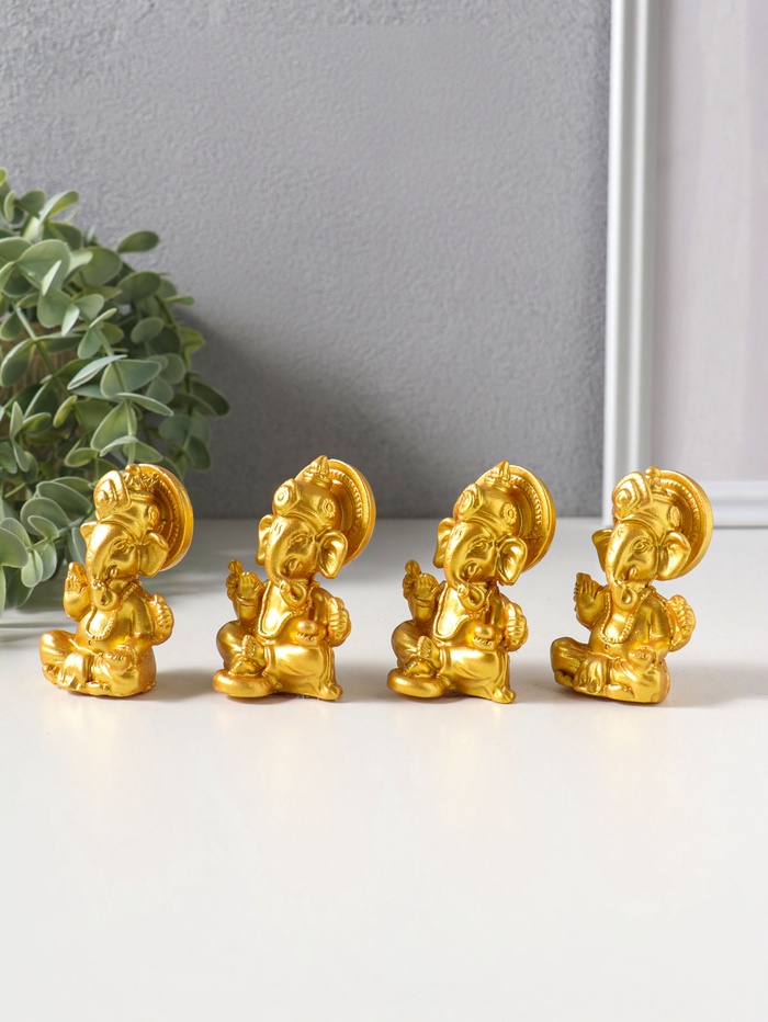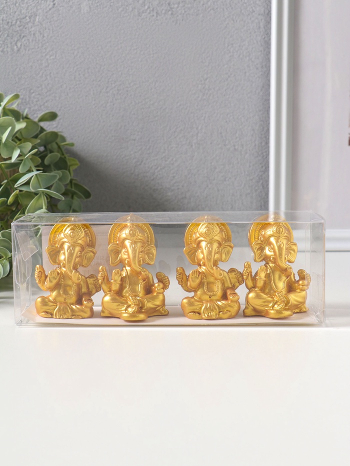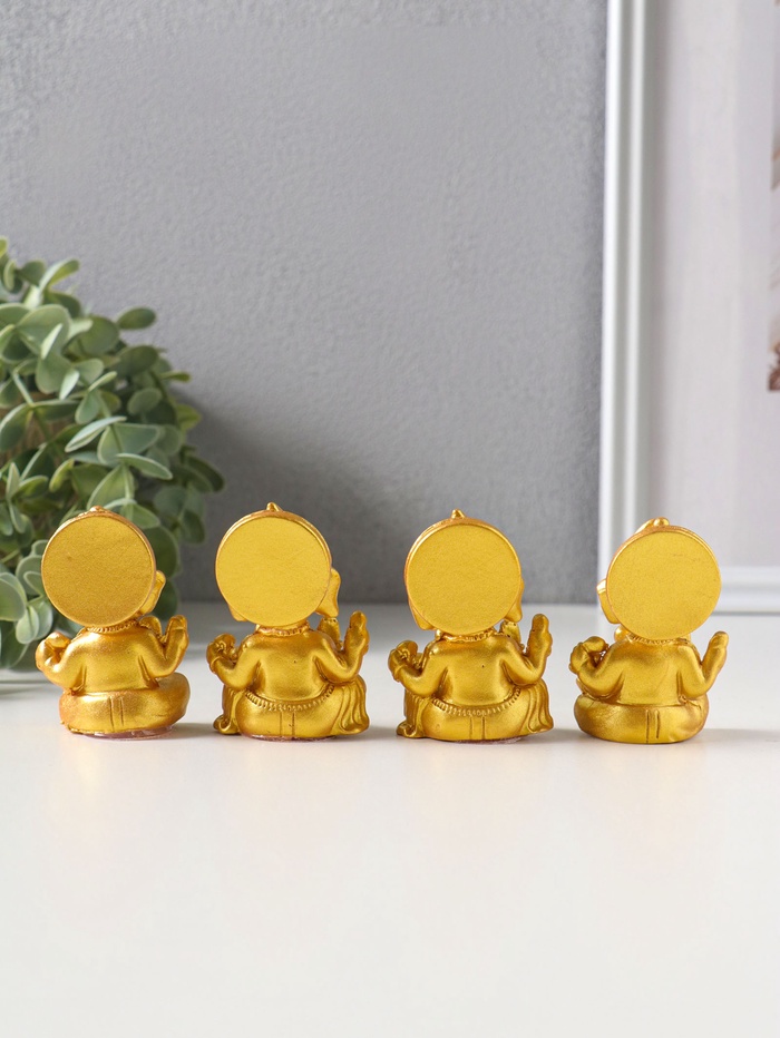 Сувенир полистоун "Ганеша" набор 4 шт золото 3,5х4,4х6,2 см