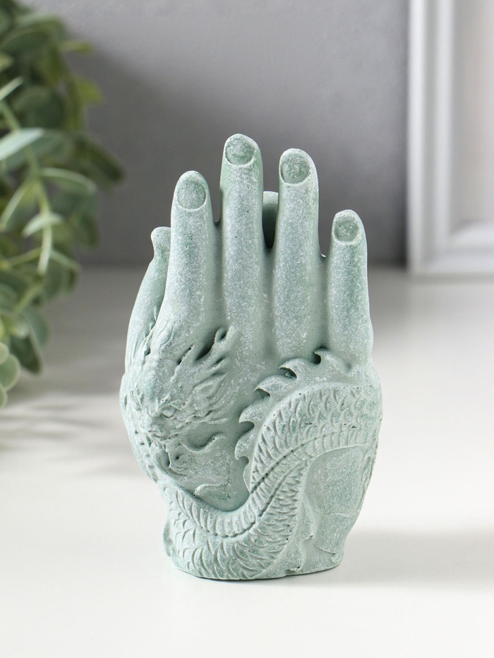 Сувенир полистоун "Хотей и рука с драконом" зелёный 6,5х7х12,5 см