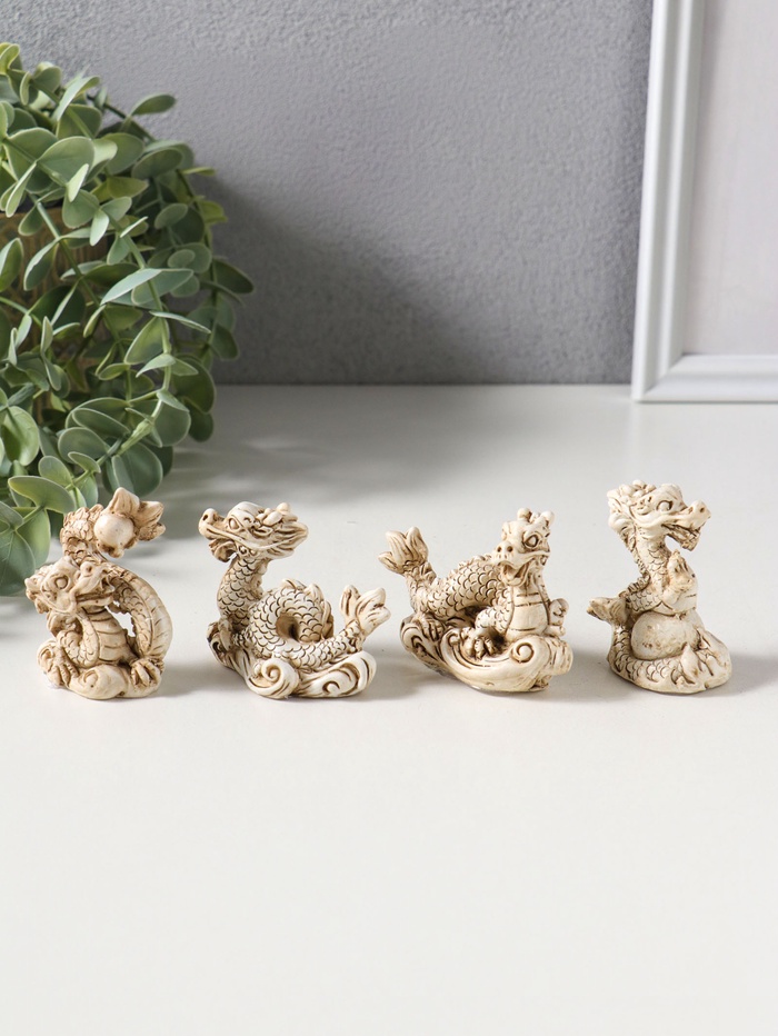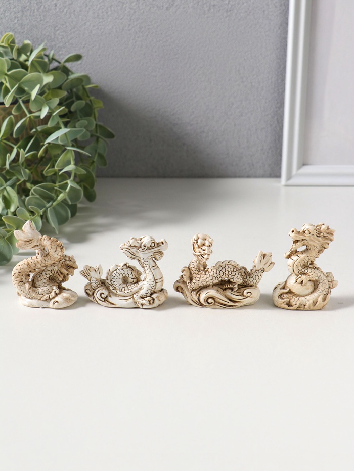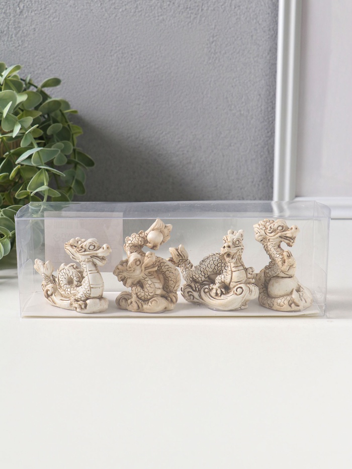 Сувенир полистоун "Китайский дракон" набор 4 шт беж 3х4х6,5 см