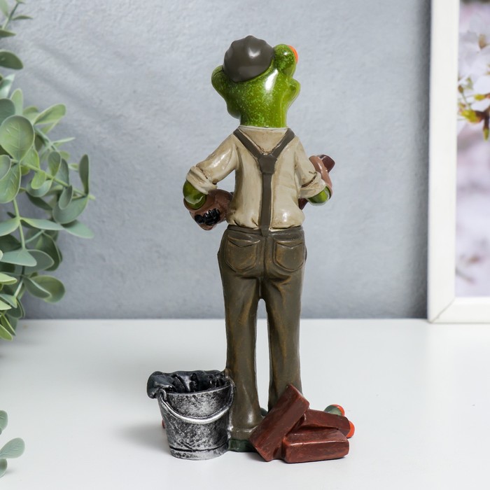 Сувенир полистоун лак "Лягуха - Строитель-каменщик" 17,5х7,5х9,5 см