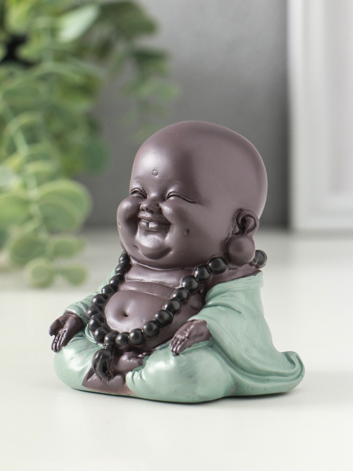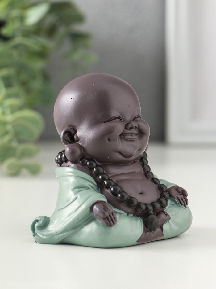 Сувенир полистоун "Маленький будда - Абхайя-мудра" зелёно-коричневый 8х6х6 см