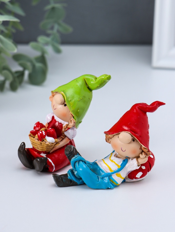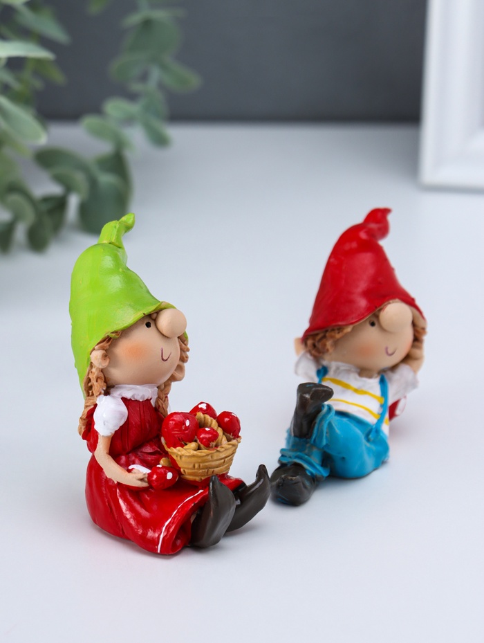 Сувенир полистоун "Малыши в длинных колпаках" красный набор 2 шт 3,3х6х6,7 см